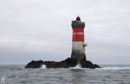 Le temps gris et la mer agitée font un décor parfait pour ce phare plutôt désolé. Les rochers qu’il signale sont bien noirs et plutôt menaçant, avec des cormorans perchés dessus.
