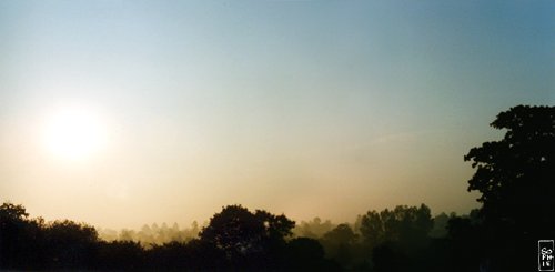 Dawn in a Norman valley, a still moment caught while going to work in summer. The way the trees fade to the mist colour in the distance makes it look like a Chinese painting.