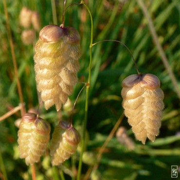 Quaking grass, with its velvety imbricated inflorescences, takes a golden tint in the setting sun light.