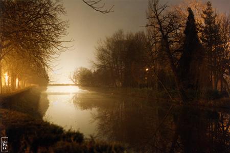 La Vilaine est illuminée la nuit à Cesson-Sévigné